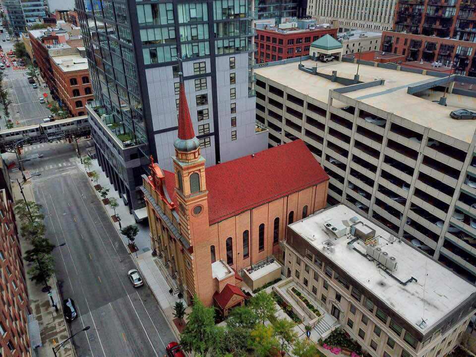 This tour is divided according to sections of the building. Click on the links, below, to see images of stained glass windows and other decorative and artistic elements.